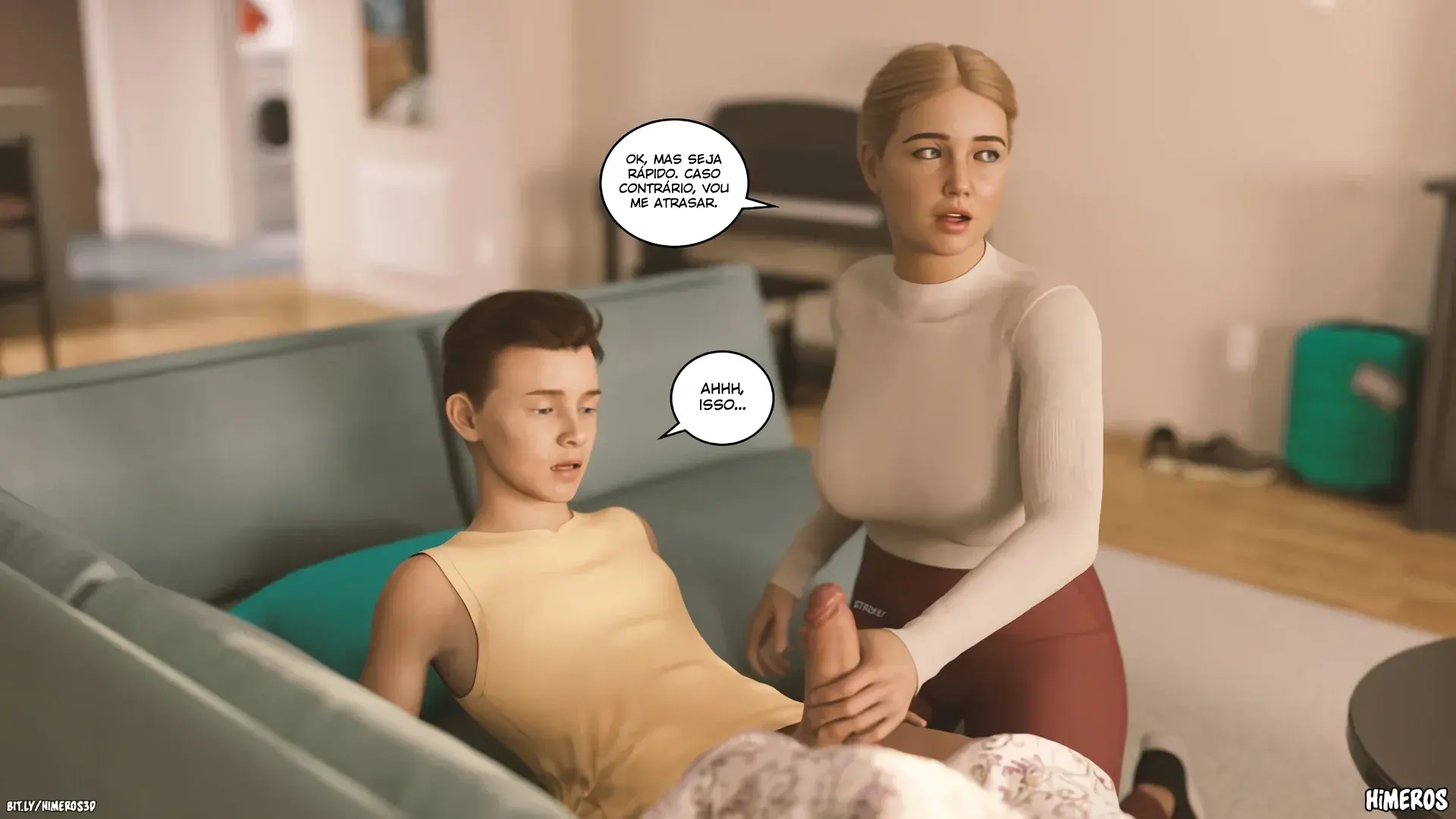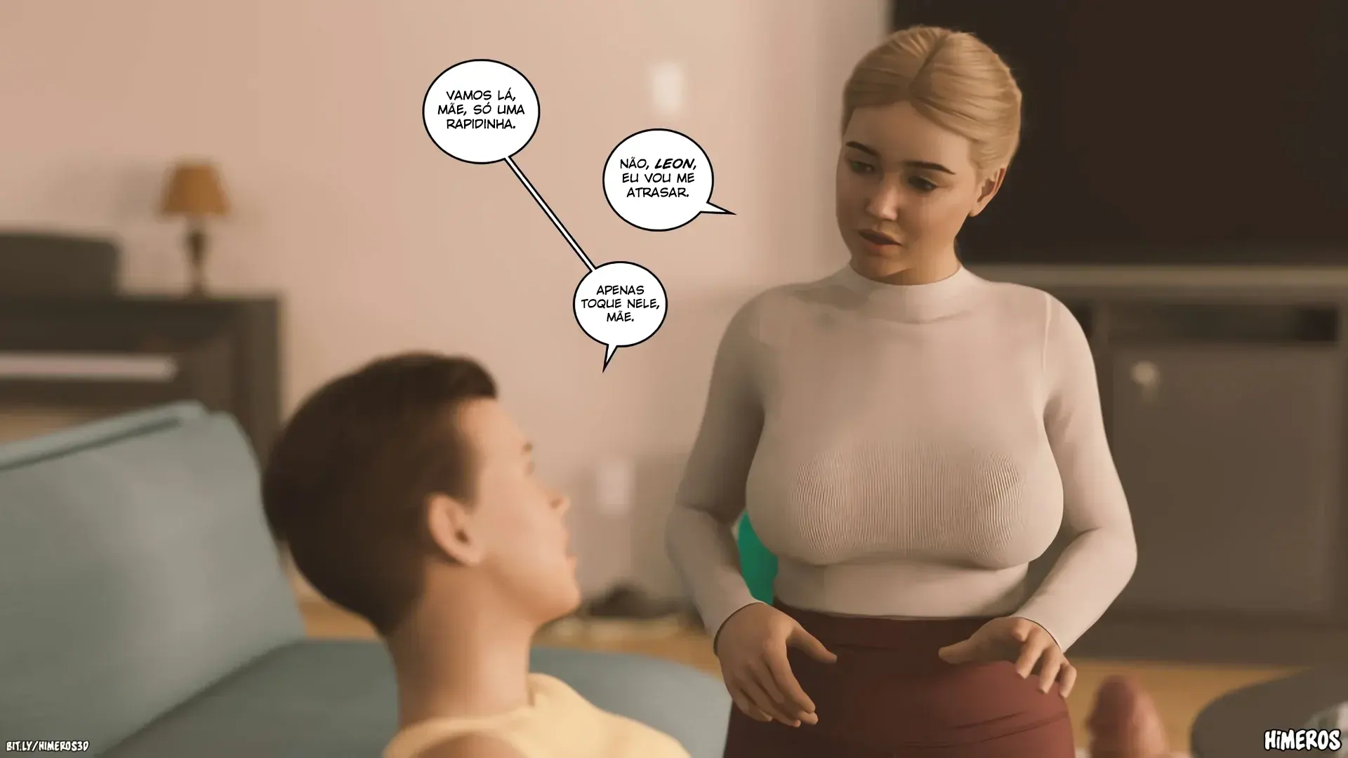 Leon acaba lendo alguns comentários sobre a sua mãe na internet. E ele fica sabendo de alguns fetiches que ela tem e resolve experimentar e fazer com ela. Então ele chega nela e da um tapa na bunda dela. Ela fica meio assustada então ele conta para ela que ele ficou sabendo que ela gosta. E ela não consegue disfarçar que gosta de levar alguns tapinhas e que ela ate gosa mais fácil.