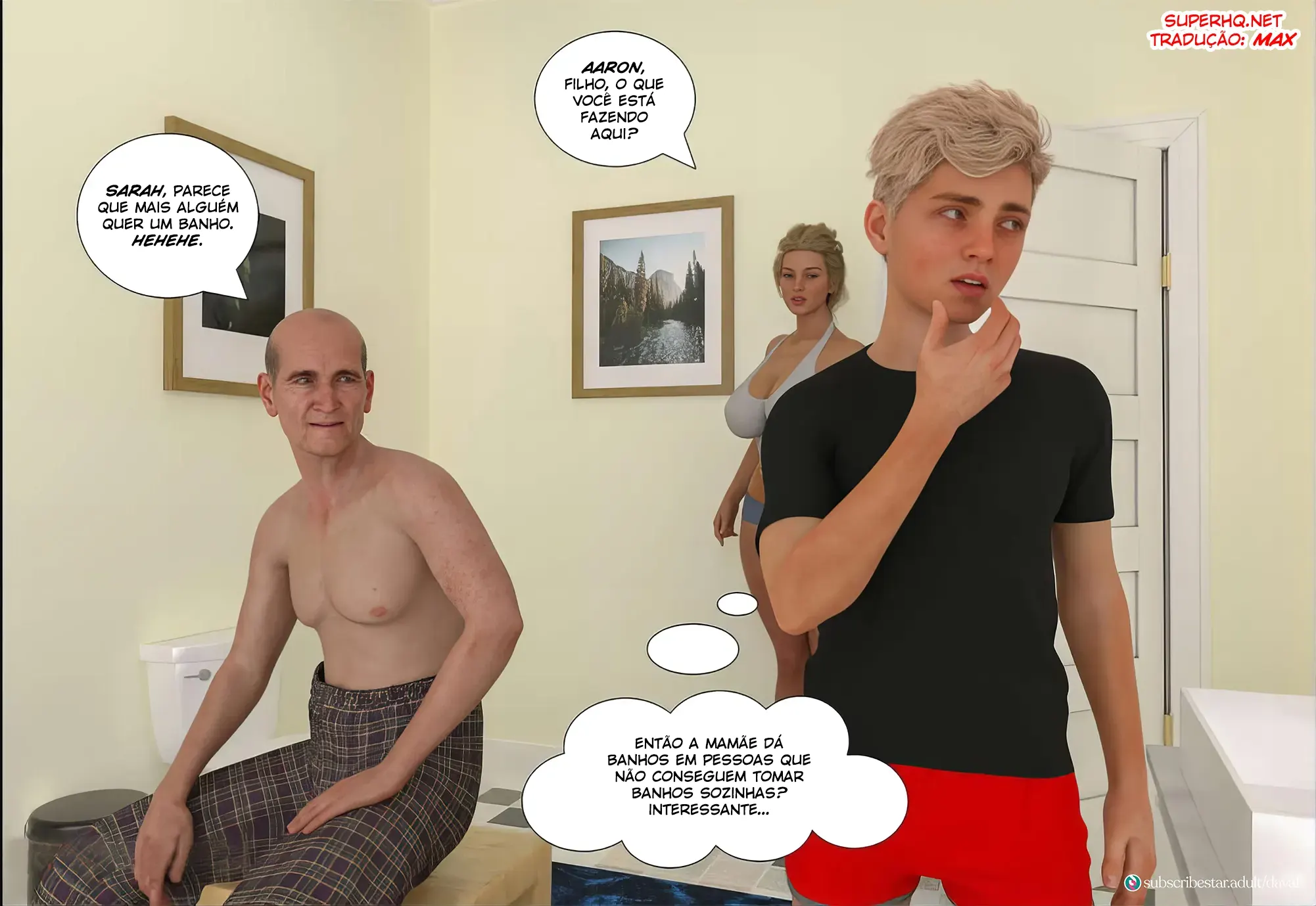 Sarah vai ate o quarto do seu filho pois ele esta com muita raiva de ter visto ela tradando com o David. Então ela resolve acalmar o garoto, Então ela o faz gozar com uma espanhola. Mas ele acaba pegando a sua mãe no flagra de novo. E a safada começa a chupar o pau dele na hora em que ele foi tirar satisfação.