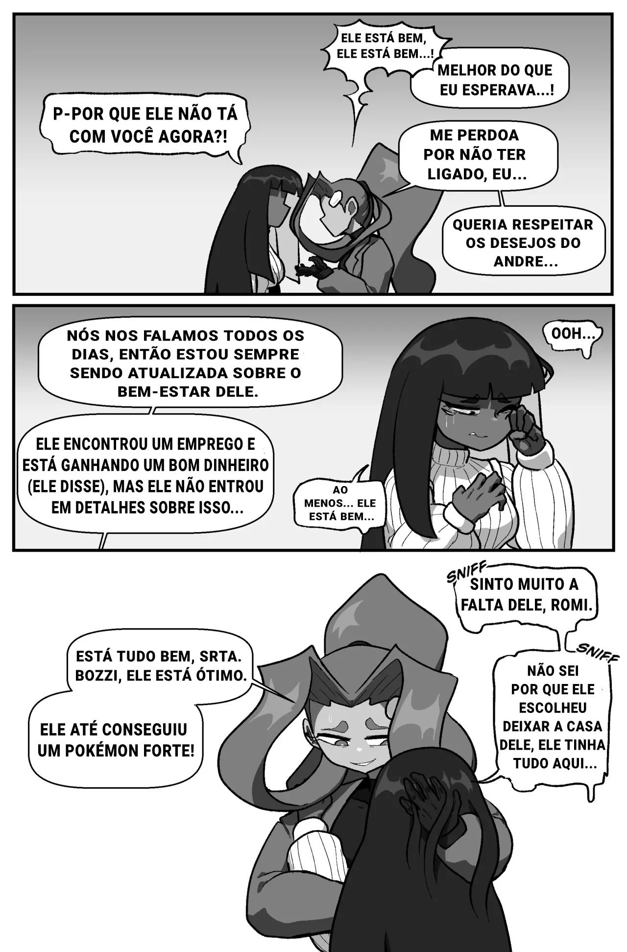 Romi conseguiu voltar para casa com a ajuda de uma treinadora Pokémon que ela conheceu na floresta. Então ela foi até a casa da mãe de André dar notícias para ela sobre André. E ela disse para a mãe do André que encontrou ele e ele está bem mas não quer voltar para casa. Pois ele arrumou um emprego e está vivendo bem e trabalhando no seu novo emprego.