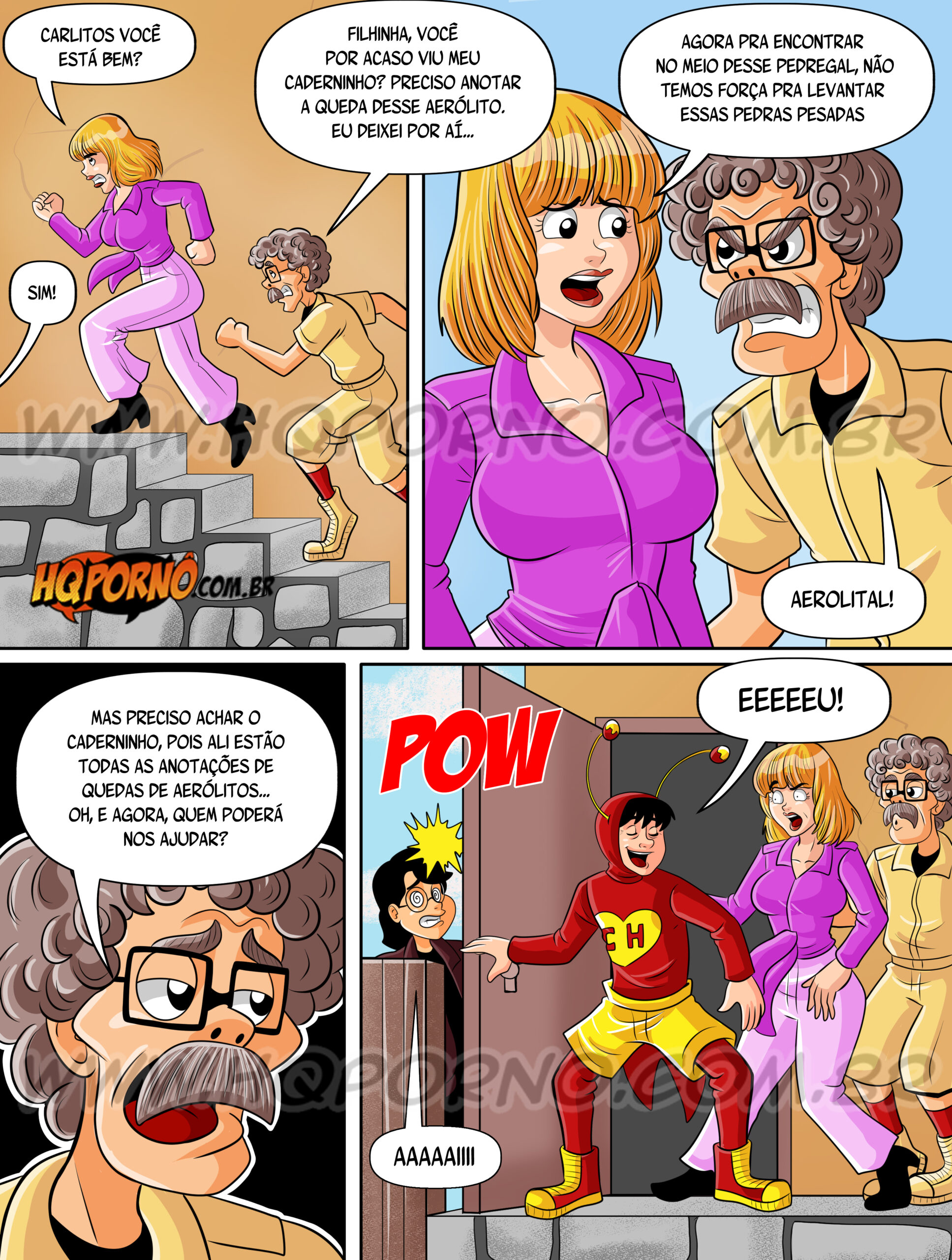 HQs 2 – Chuva de Aerólitos, ChapolTooN… O sábio explorador de fragmentos espaciais recebe a visita da prole sedutora e do companheiro dela, ansiosos por colaborar. Seu bloco de notas, lotado de detalhes sobre descidas meteoríticas, evaporou de sua memória, e ele suplica à jovem para rastreá-lo, demandando erguer as pedras colossais acumuladas – esforço que excede a força mortal. Contudo, Chapoltoon detém uma potência inigualável! Em um aposento transbordante de relíquias celestiais, o mestre ilustra ao protetor o que representam esses tesouros, até que um ruído irrompe do exterior, desencadeando uma saraivada de aerólitos. Tal cataclismo permite que Chapoltoon demonstre seu heroísmo supremo, colhendo uma gratidão profundamente sensual e devota da filha do visionário.