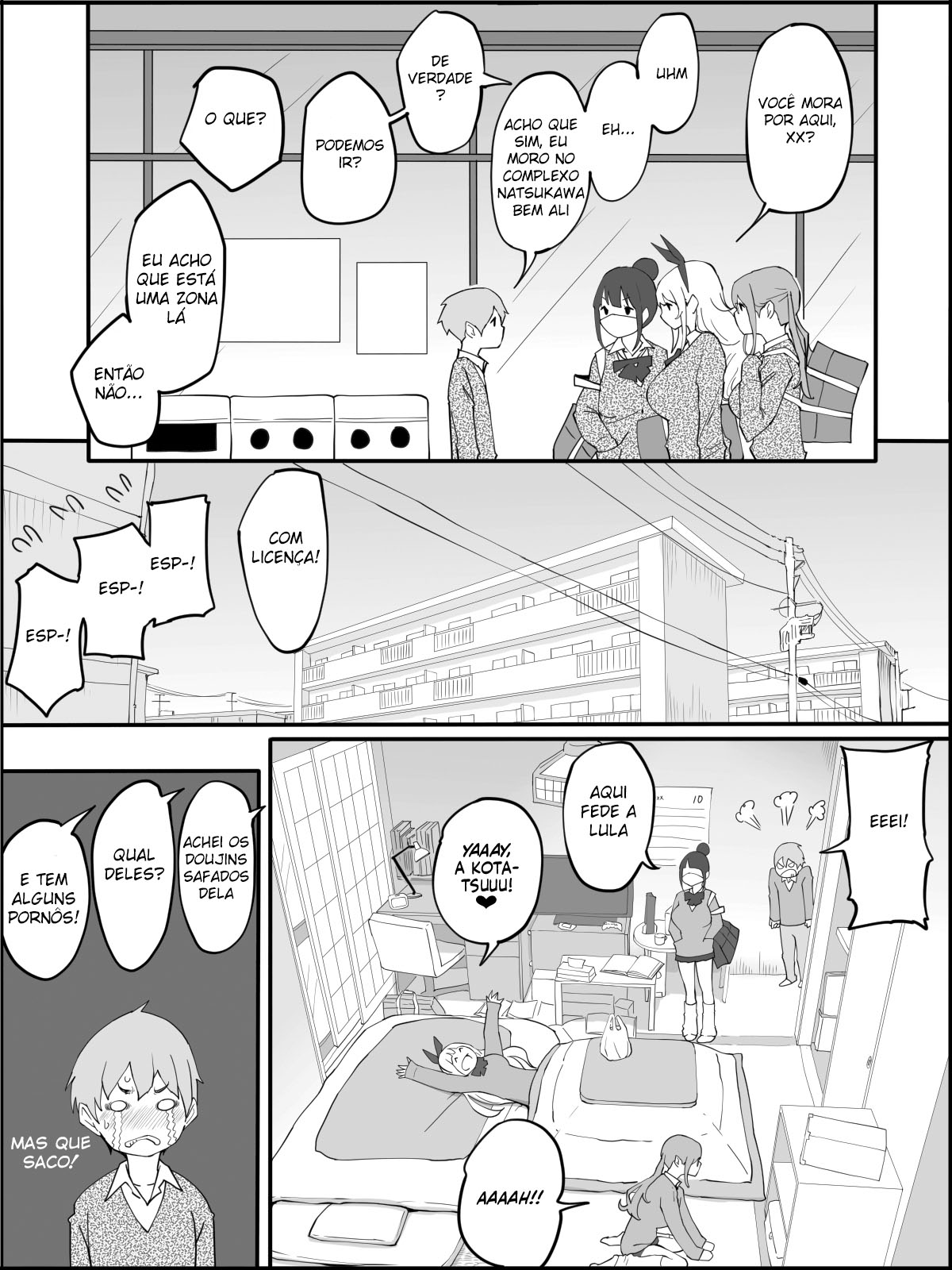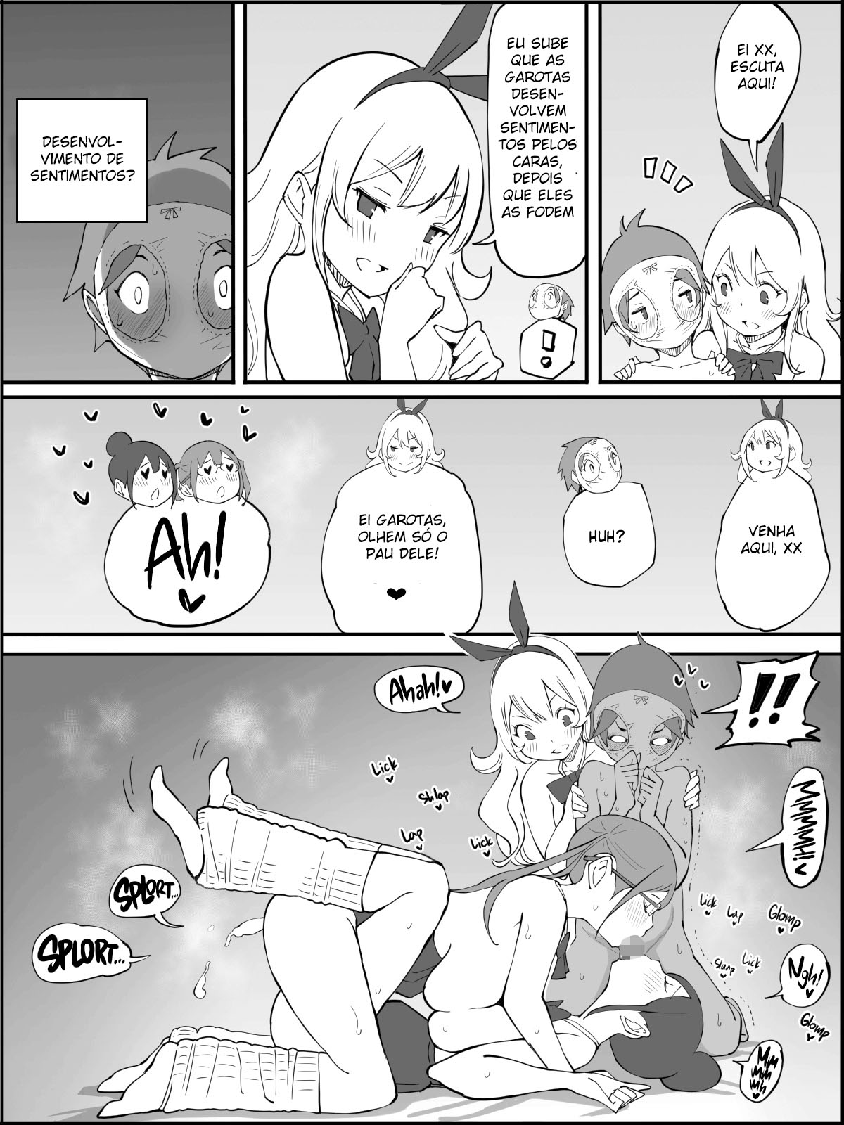 Esse garoto foi ao mercado e acabou se encontrando com três garotas da sua escola no mercado. Então elas foram falar com ele e perguntaram onde e que ele morava. Então ele disse que morava pertinho, e elas foram com ele para casa dele. E as garotas são umas pervertidas que vão se aproveitar do garoto.