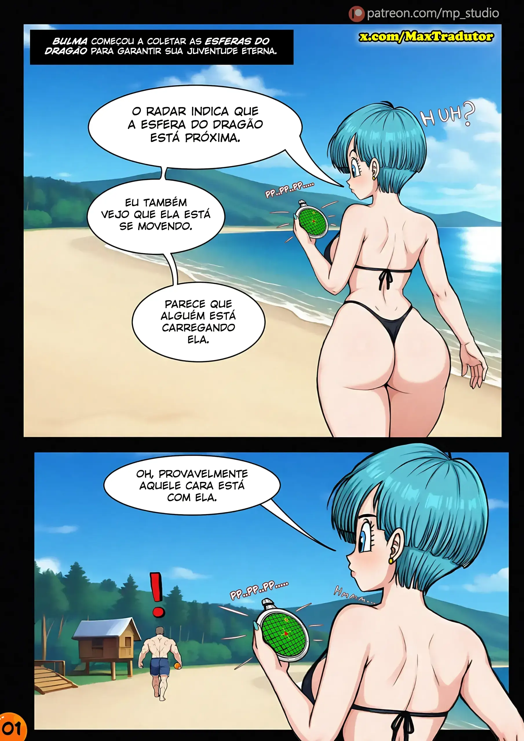DBZ – Majin Bulma. Bulma vai ate uma praia atrás de uma localização de uma esfera do dragão. Mas ela encontra um homem que enfeitiça ela e quer que ela chupe o pau dele e ainda entregue as esferas que estão com ela. Mas ela disse que vai chupar o pau dele mas ele que vai ter que dar a esfera dele.