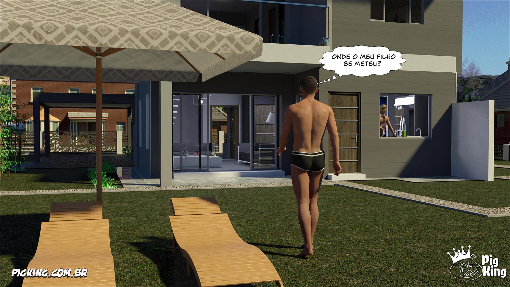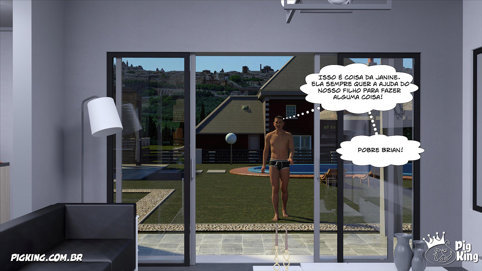 Brian estava com a sua mãe na cozinha e ele começa a fazer ela ficar excitada. E Ela não aguenta de tesão e começa a transar com ele. E enquanto isso a irmã dele esta no porão da sua casa transando com o Pet da família que meteu a rola na puta que adora fazer Hentai 3D.