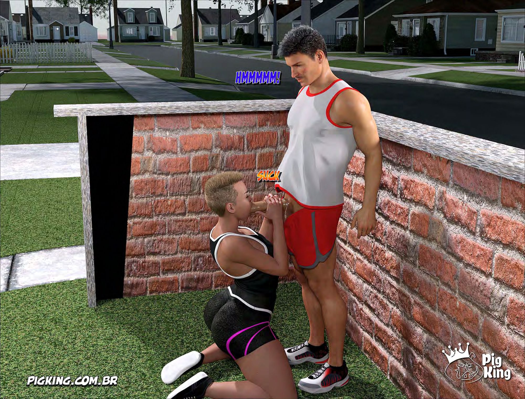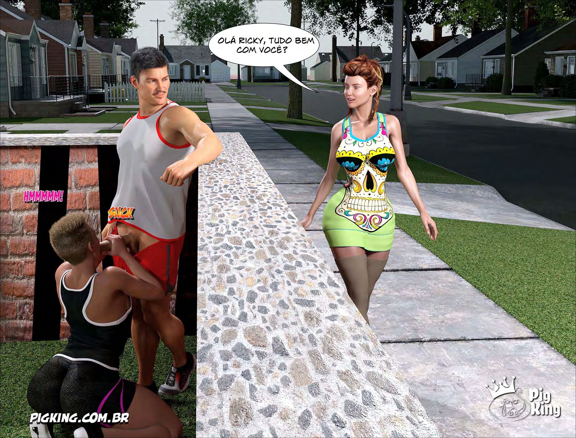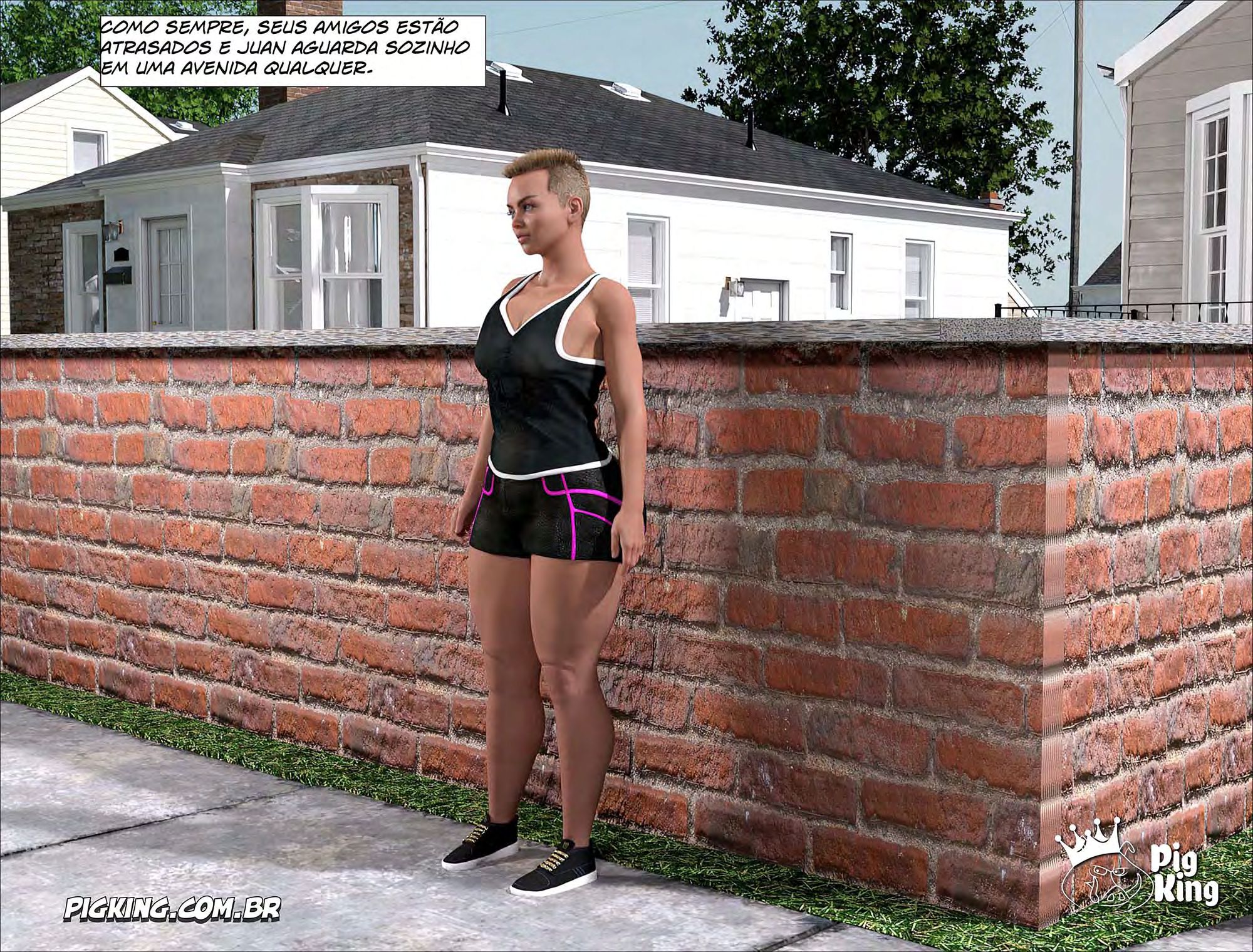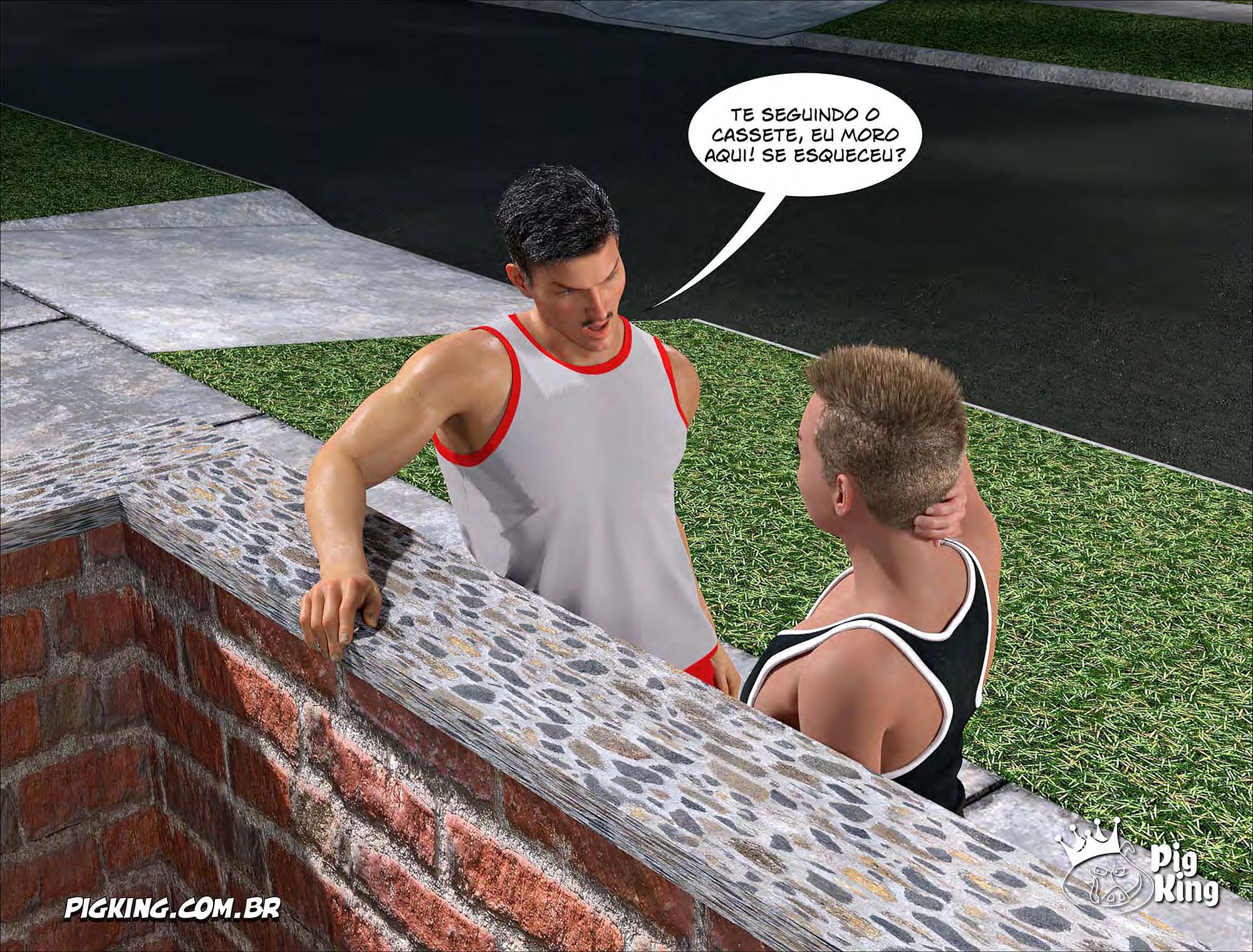 Juan estava com sua namorada na lanchonete e Ricky apareceu e foi com ele ao banheiro e fodeu ele. E quando eles terminaram Juan foi embora e depois ele saiu na rua de casa para encontrar com seus amigos. Mas ele acabou encontrando Ricky de novo e Ricky obrigou ele a transar com ele atrás do muro.