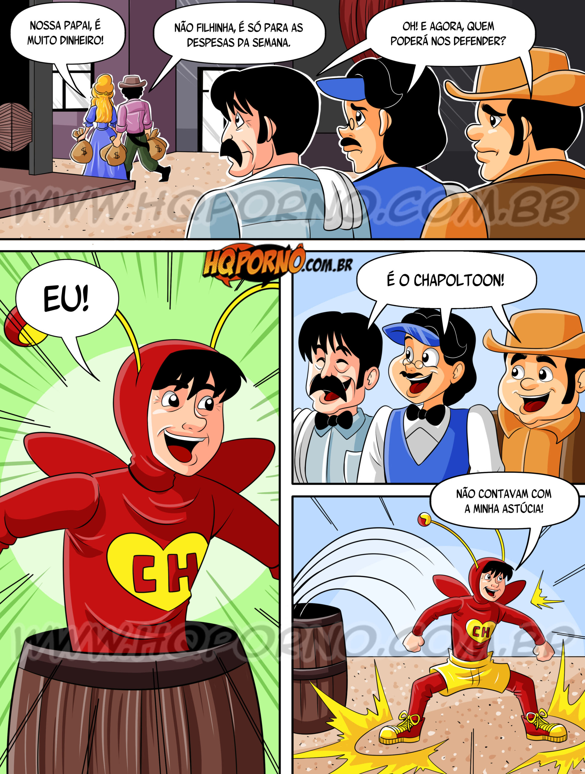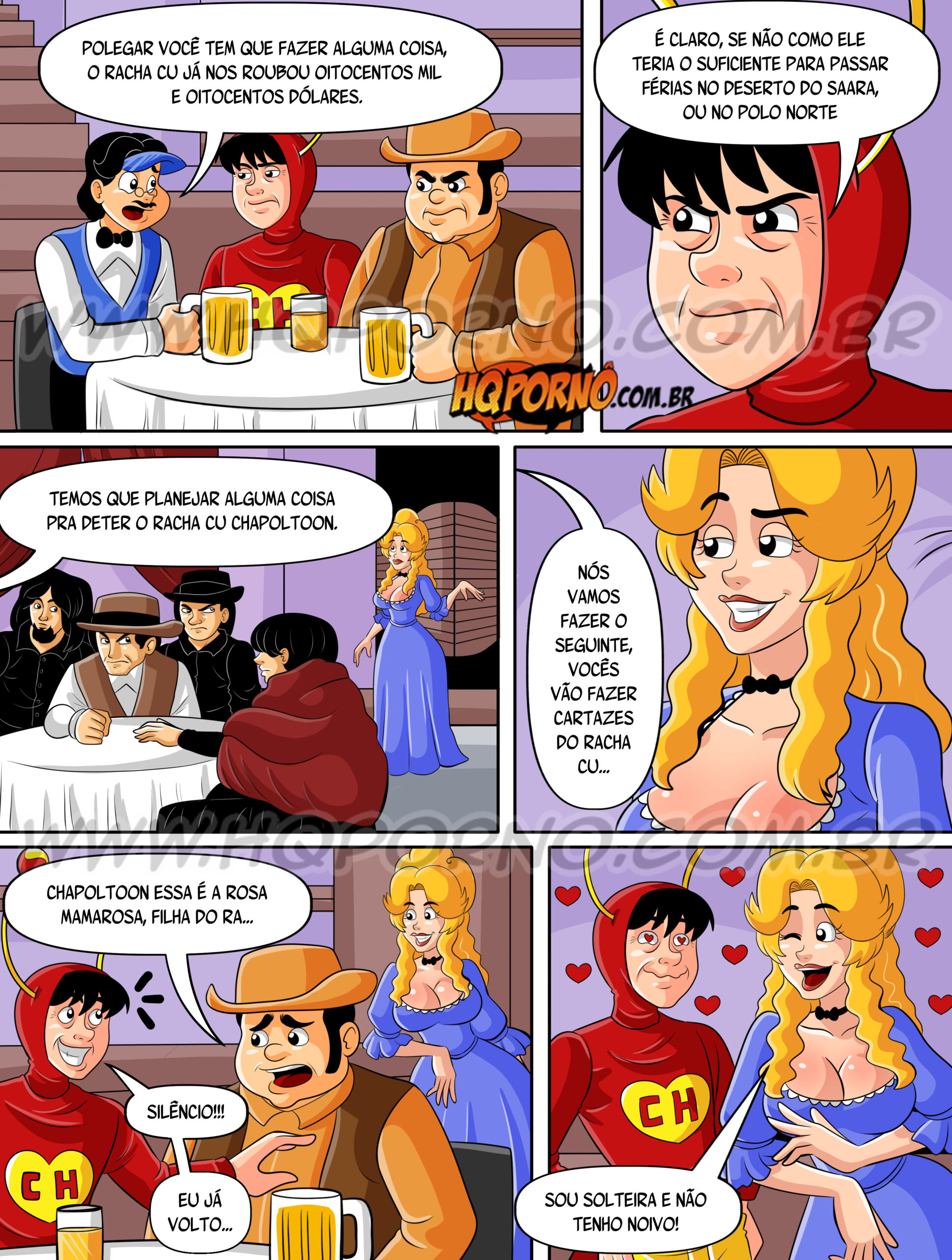 HQs 1 – O Bandido Racha Cu, ChapolTooN. Racha Cu assusta a cidade, preocupando o Xerife. Para combater o bandido, Chapolin Colorado é invocado. Mas a linda filha do Xerife, Rosa Mamarosa, seduz o herói, criando um dilema inesperado antes do confronto final com o vilão.