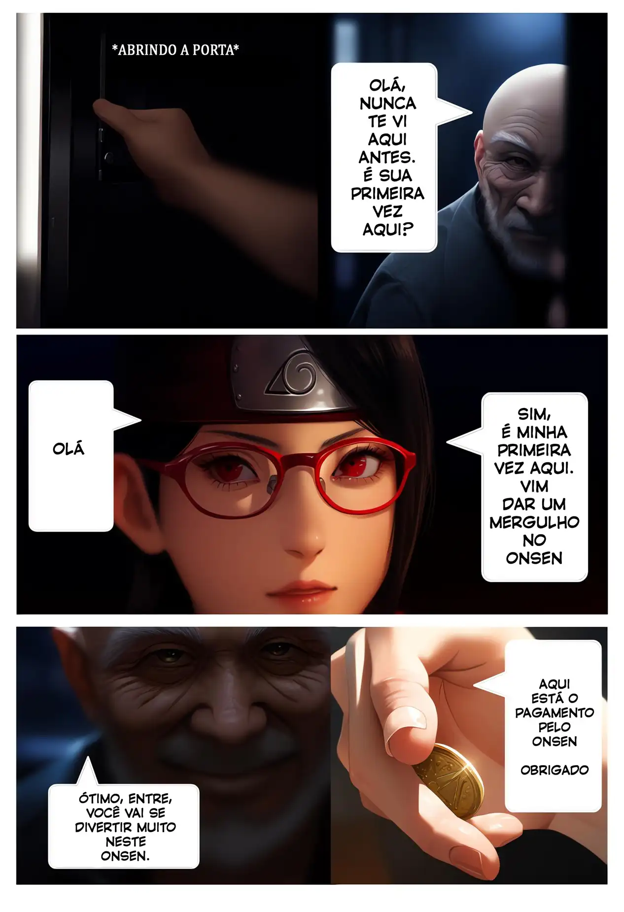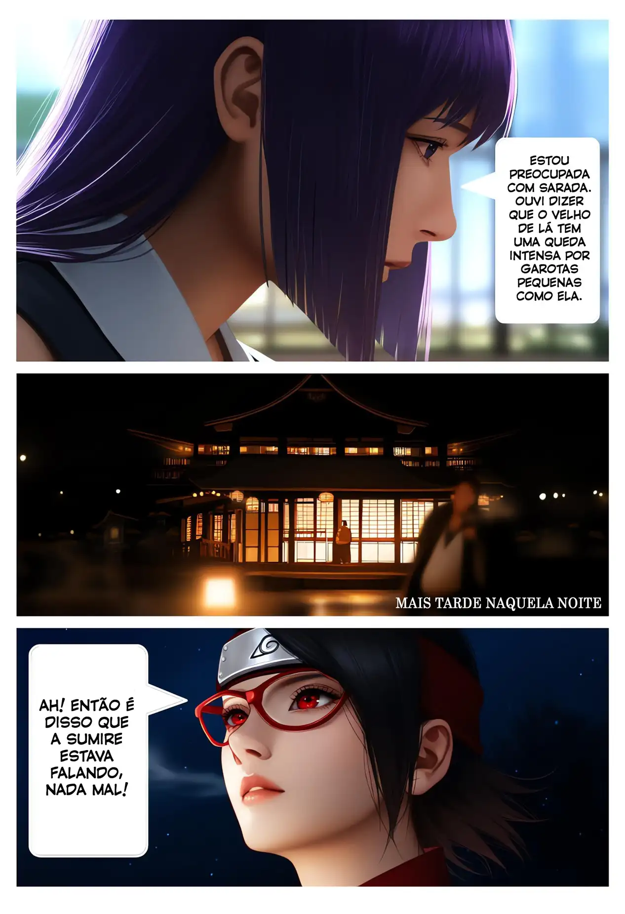 Sarada decide se aventurar a noite e ir até as fontes termais mesmo sabendo que esse horário só tem velho tarado lá. Então ela acaba sendo seduzida por um velho que a faz ficar louca de tesão. Fazendo com que a safadinha volte todos os dias à noite nas fontes termais para transar com os velhos do manga do Naruto Hentai.