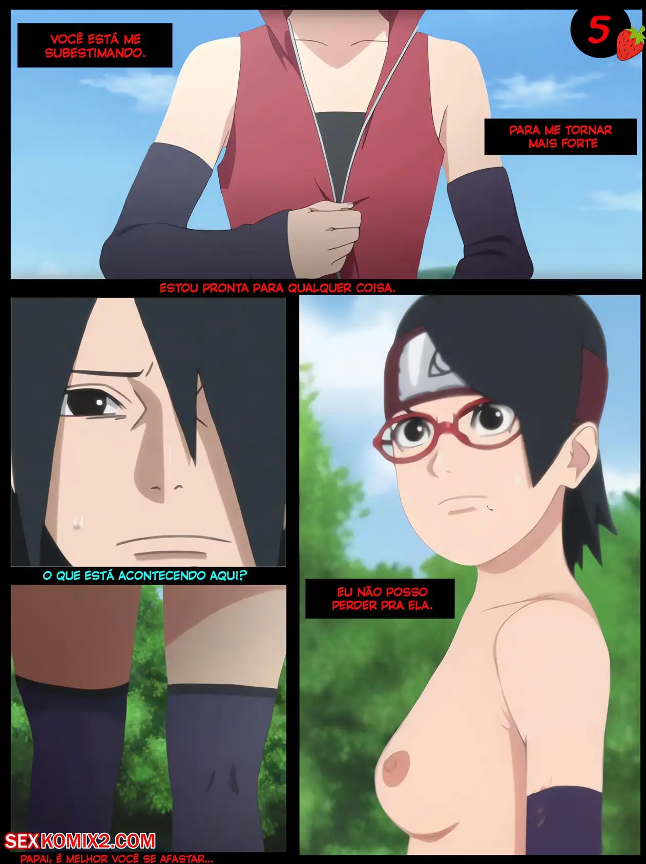 Sarada estava fazendo um treinamento com seu pai para fortalecer seu Sharingan. Mas de repente a sua mãe aparece interfere o treino deles para dar um treinamento especial para sarada. Então Sakura explica para ela que o seu treinamento só poderá fazer se tiver as duas peladas. Então começa o treinamento pervertido entre mãe e filha num hentai incesto.