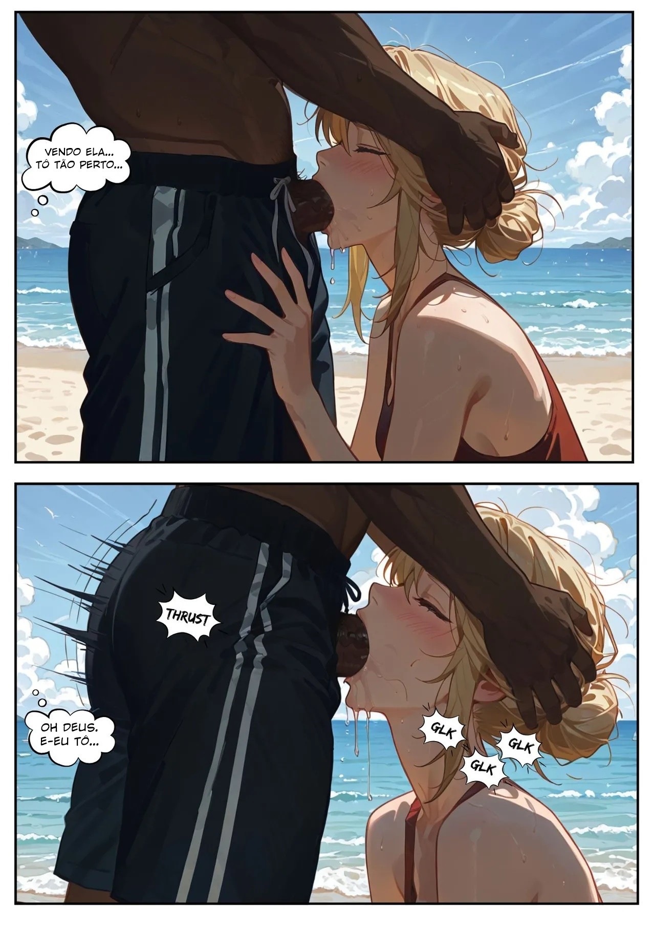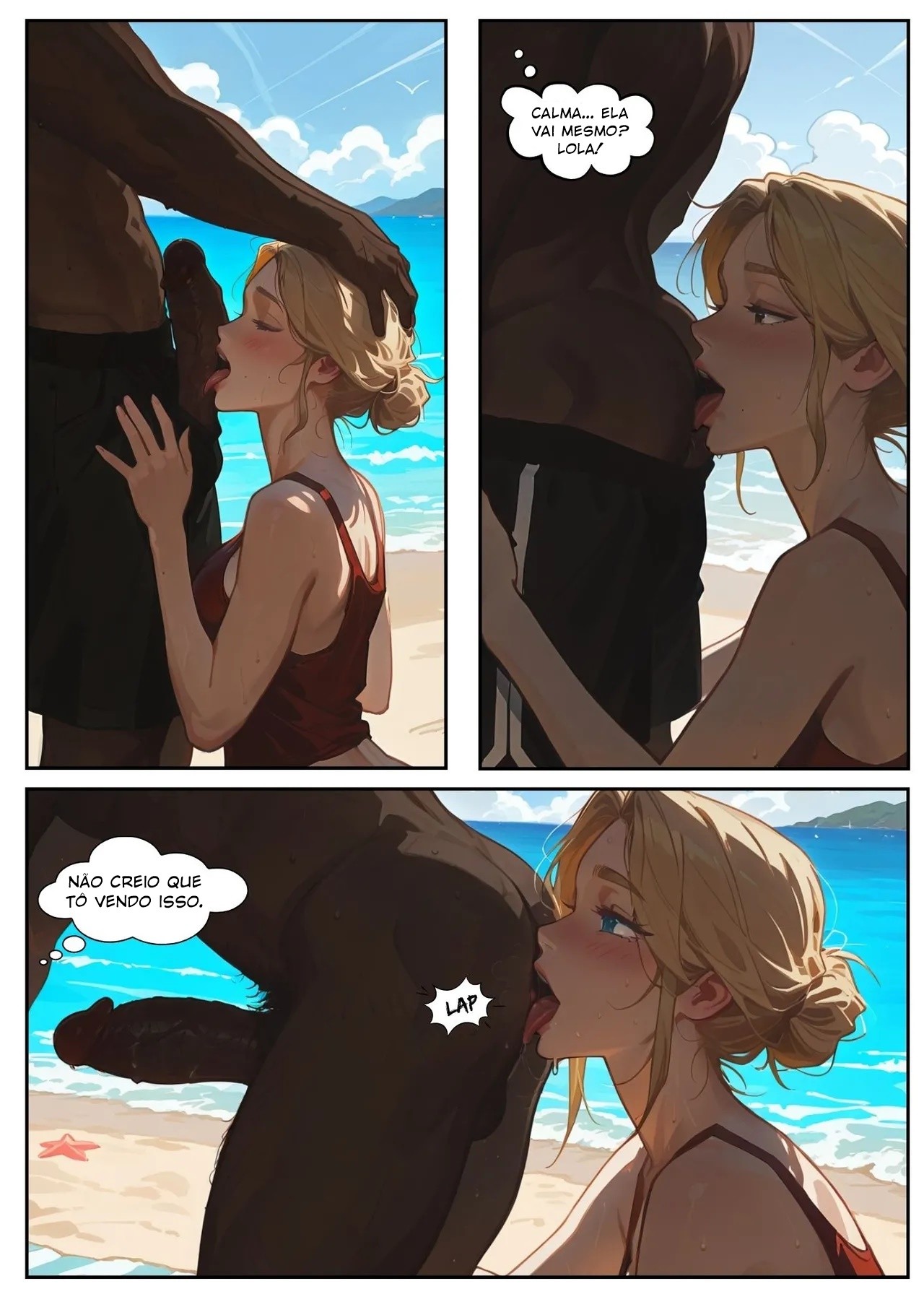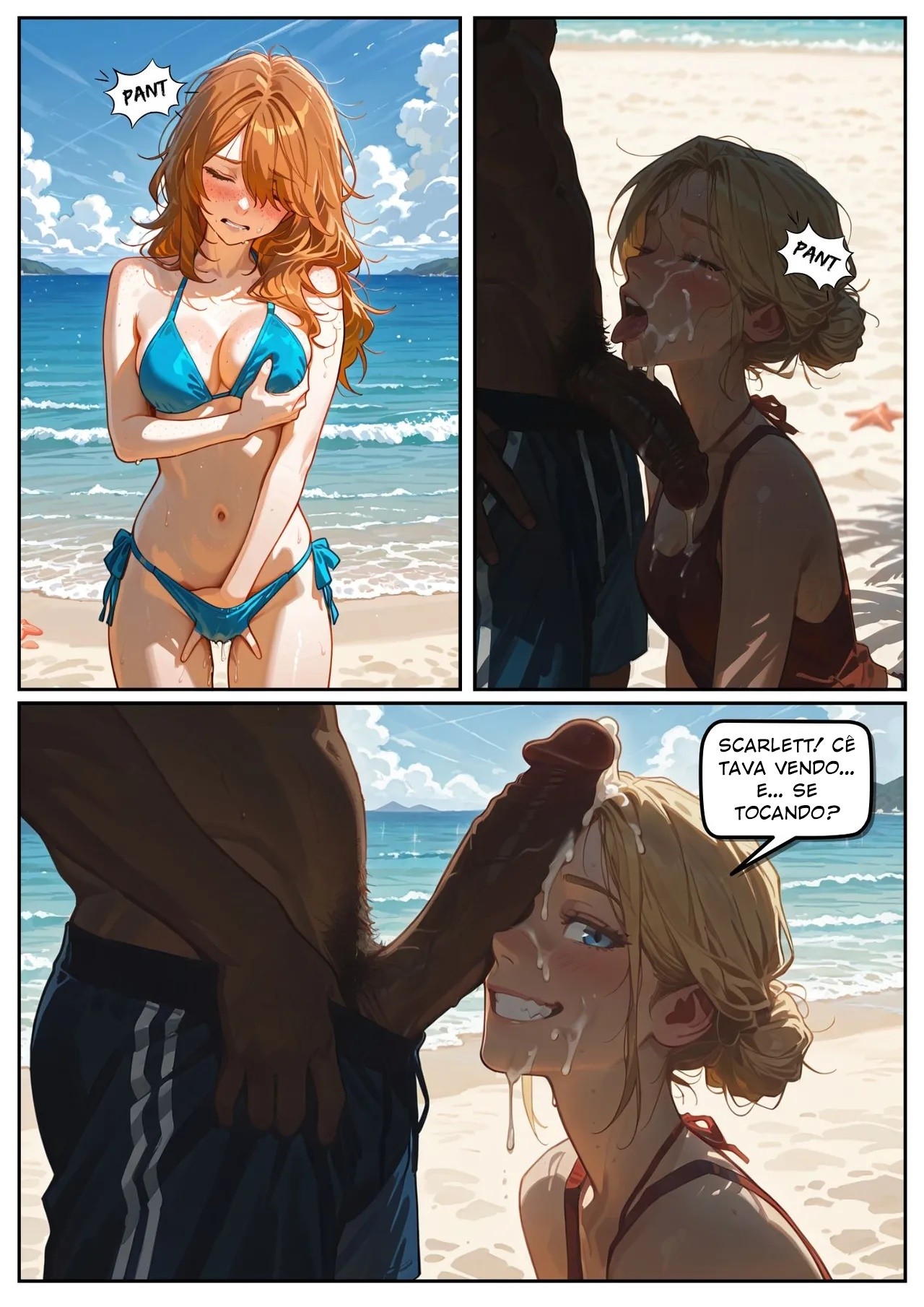 Scarlett decide ir para a praia com seu namorado do pau pequeno, e também a sua amiga loira safada que sempre da ideia errada para a amiga. E dessa vez não será diferente, a safada indica que ela prove um pau negro, fazendo a safada trair seu namorado com um pau bem dotado ali mesmo na praia.