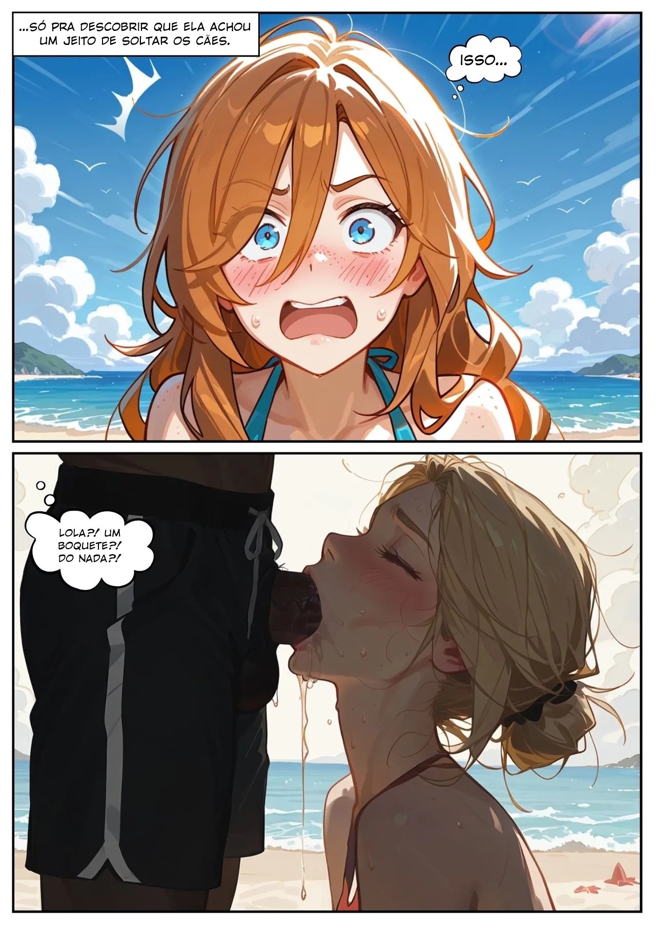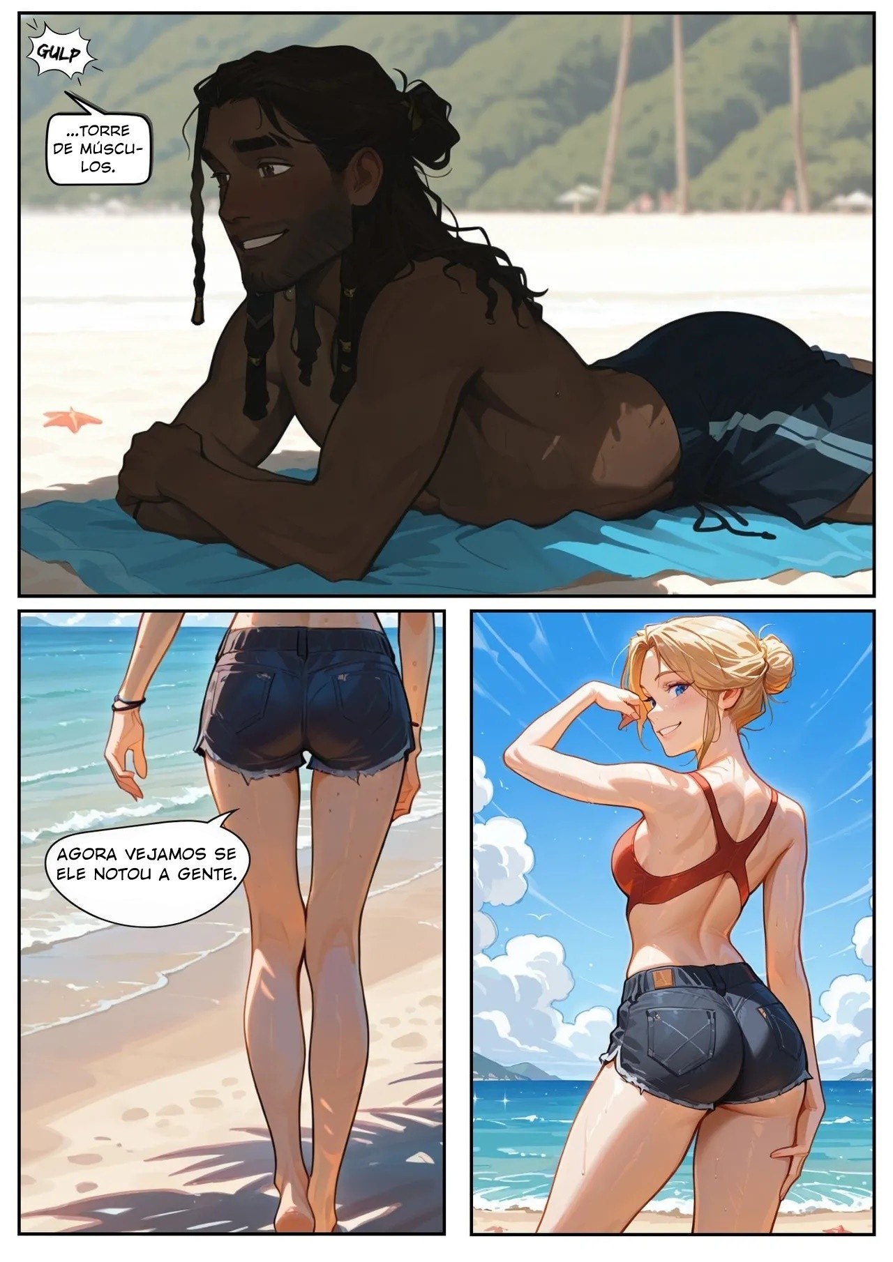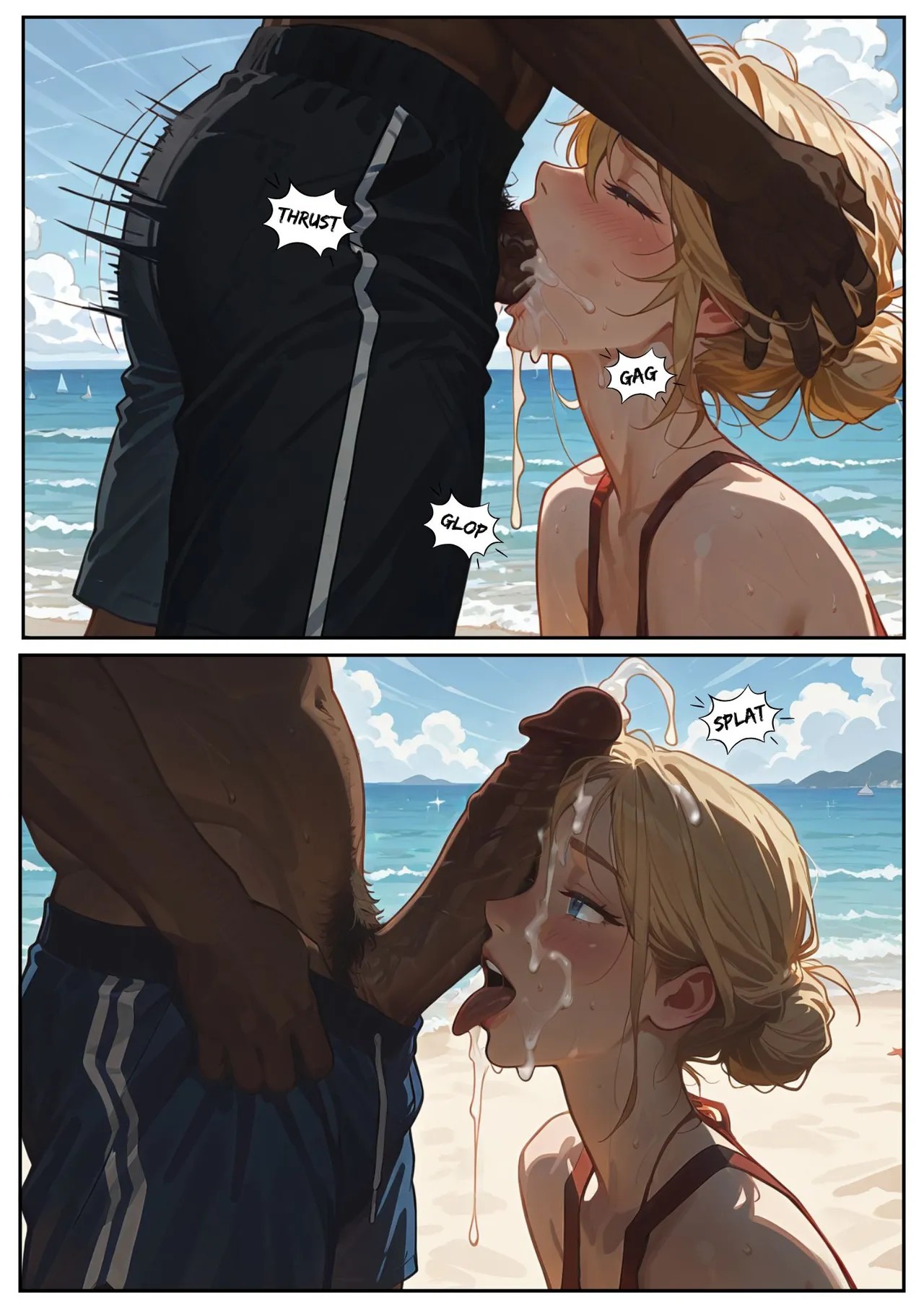 Scarlett decide ir para a praia com seu namorado do pau pequeno, e também a sua amiga loira safada que sempre da ideia errada para a amiga. E dessa vez não será diferente, a safada indica que ela prove um pau negro, fazendo a safada trair seu namorado com um pau bem dotado ali mesmo na praia.